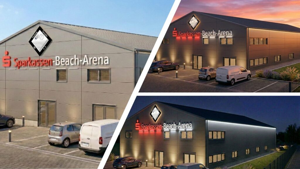 - Geplante Fertigstellung: Wir blicken voller Vorfreude auf den Sommer 2026, wenn wir die ersten Bälle in der Sparkassen-Arena über das Netz schlagen.